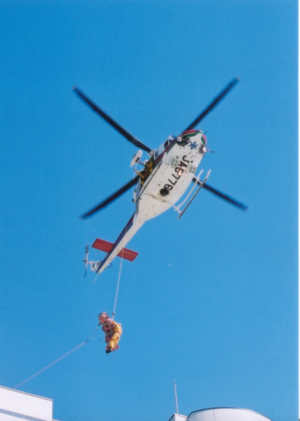 岩手県防災ヘリコプター 「ひめかみ」 による高所救出訓練