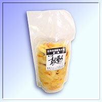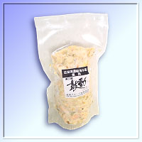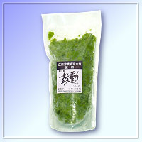| 海藻キムチ タコとホタテのひも内臓をキムチに漬け込みました。キムチの辛味とホタテの甘味がよくあいます。新鮮な味わいです。 |